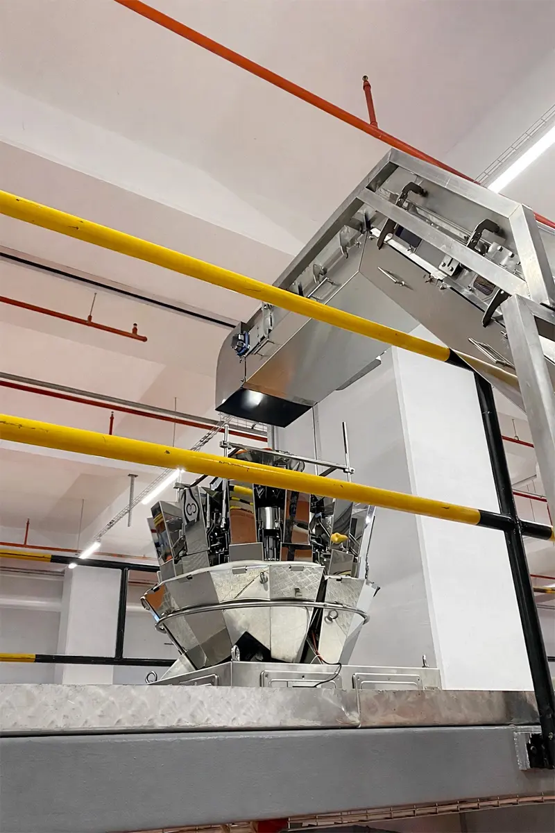 Conveyor solutions that ensure regular, controlled and stable transportation of packaged products from vertical packaging machines, safely feeding quality control and end-of-line processes.