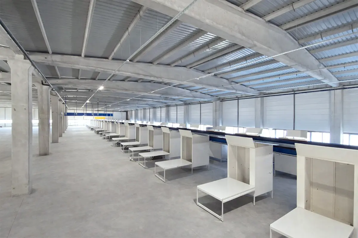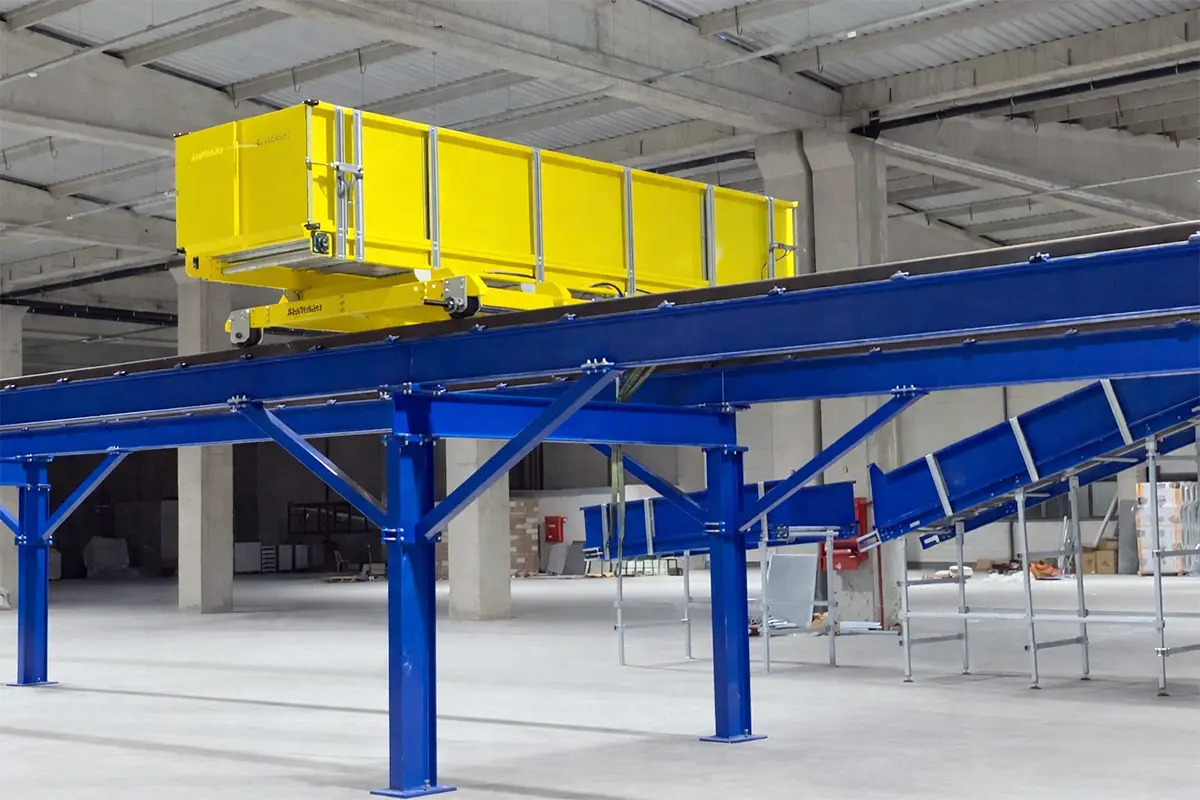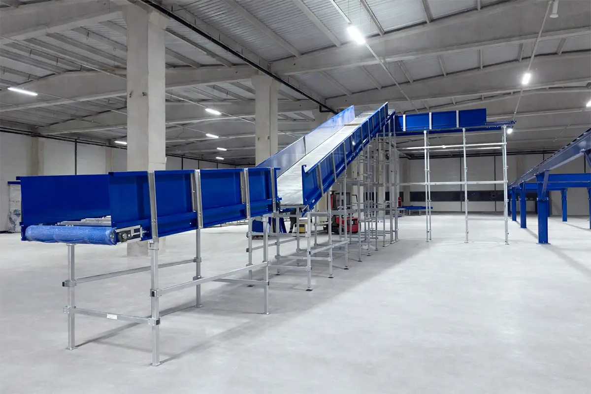 Projede, tekstil atıklarının tartım ve kategori bazlı ayrıştırma süreçlerine düzenli besleme sağlamak amacıyla PVC ve PU bantlı taşıma hatlarından oluşan bir sistem kuruldu. Tartım modülü, ürünler operatör istasyonlarına ulaşmadan önce ağırlık bilgisini alacak şekilde konumlandırıldı. 40 istasyonlu ayrıştırma düzenine uygun konveyör geometrisiyle kıyafetler masalara dengeli dağıtıldı. Paslanmaz çelik ve alüminyum gövde yapısı, bakım erişimini kolaylaştırırken hat dayanımını artırdı.